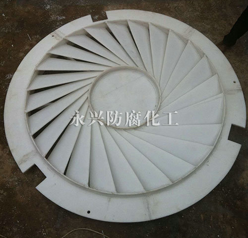 旋流板塔是一种喷射型塔板洗涤器,塔板叶片如固定的风车叶片,气流通过叶片时产生旋转和离心运动,吸收液通过中间盲板均匀分配到叶片,形成薄液层,与旋转向上的气流形成旋转和离心的效果,喷成细小液滴,甩向塔壁后。液滴受重力作用集流到集液槽,并通过降液管流到下一塔板的盲板区,具有一定风压,风速的待处理气流从塔的上部进,下部出。气流与吸收液在塔内作相对运动,并在旋流塔板的结构部位形成很大表面积的水膜,从而大大提高了吸收作用。每一层的吸收液经旋流离心作用调入边缘的收集槽,再经导流管进入下一层塔板,进行下一层的吸收作用。