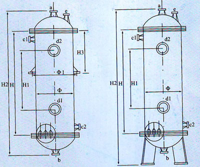 管口通途:a:进水口 b:出水口 c1:树脂进口 c2:树脂出口 d1:视镜口 d2:视镜口 e:放空口